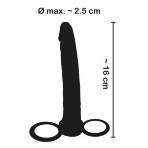 The fabulous Anal Special Dildo is manufactured in firm jet-black rubber material with a smooth penis head and slightly veined shaft and ends in two stretchy rings that attach to the base of the erection and the other wraps around the scrotum for delivering a secure fixing.