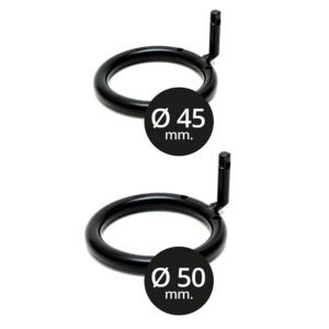 Contains, 1 padlock with 2 keys and two different sized rings, 45mm and 50mm.