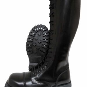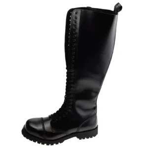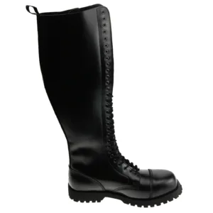 The boots are steel toe and have new black laces with them. The boots are black leather and are classic boots for the skinhead, punk and oi scene as well as for rockabillys, psychobillies and gothics.