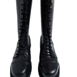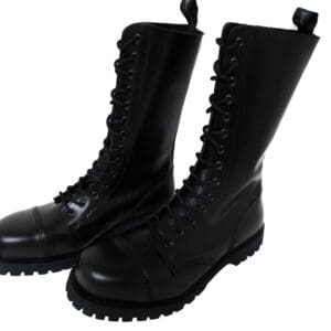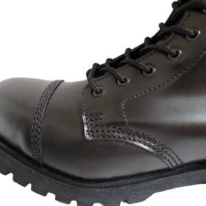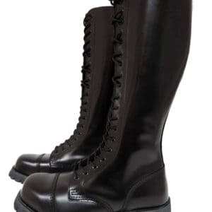 The boots are steel toe and have new black laces with them. The boots are black leather and are classic boots for the skinhead, punk and oi scene as well as for rockabillys, psychobillies and gothics.