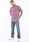 Lonsdale Button Down Short Sleeve Cotton Shirt Brixworth White Blue Red Slim-Fit