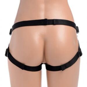 The easy-to-use harness has four adjustment points: one on either side of the waist strap, and one on each thigh. Snaps around the O-ring make it easy to strap in this dildo or others in your collection. A single-speed vibrating bullet is included that slips into a small pocket on the inside of the front panel, to deliver buzzing bliss for both partners.